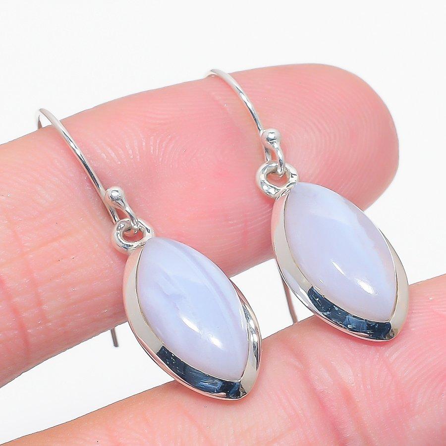 Серьги из стерлингового серебра 925 пробы с натуральным синим кружевным агатом, 1,50 дюйма, q0O67