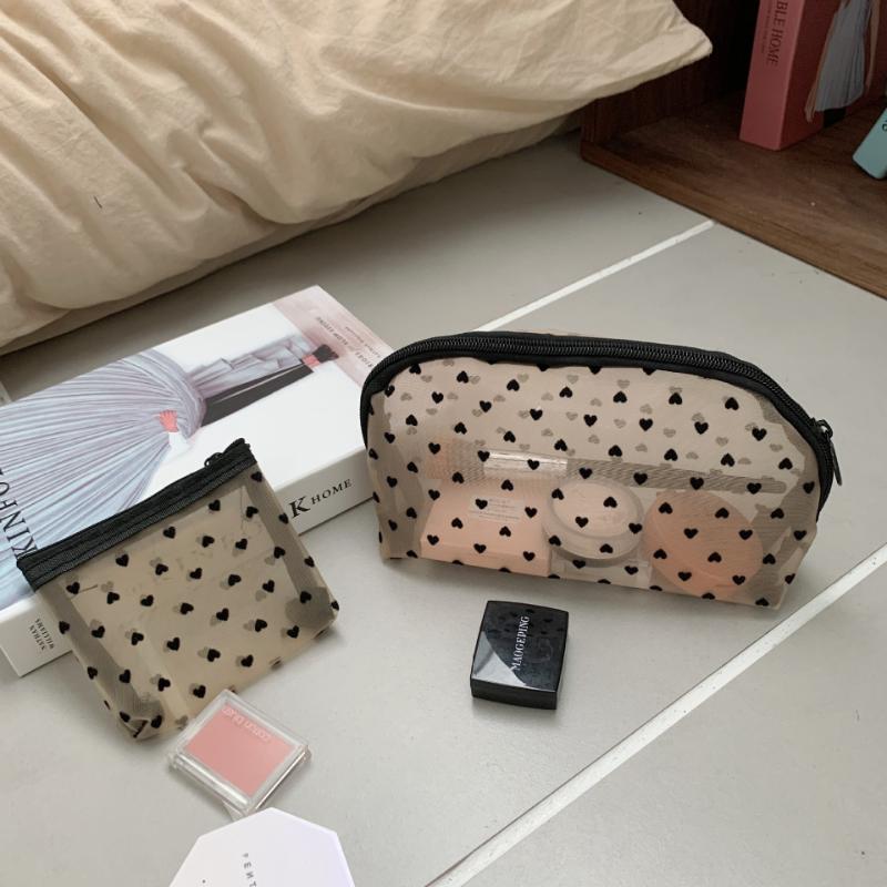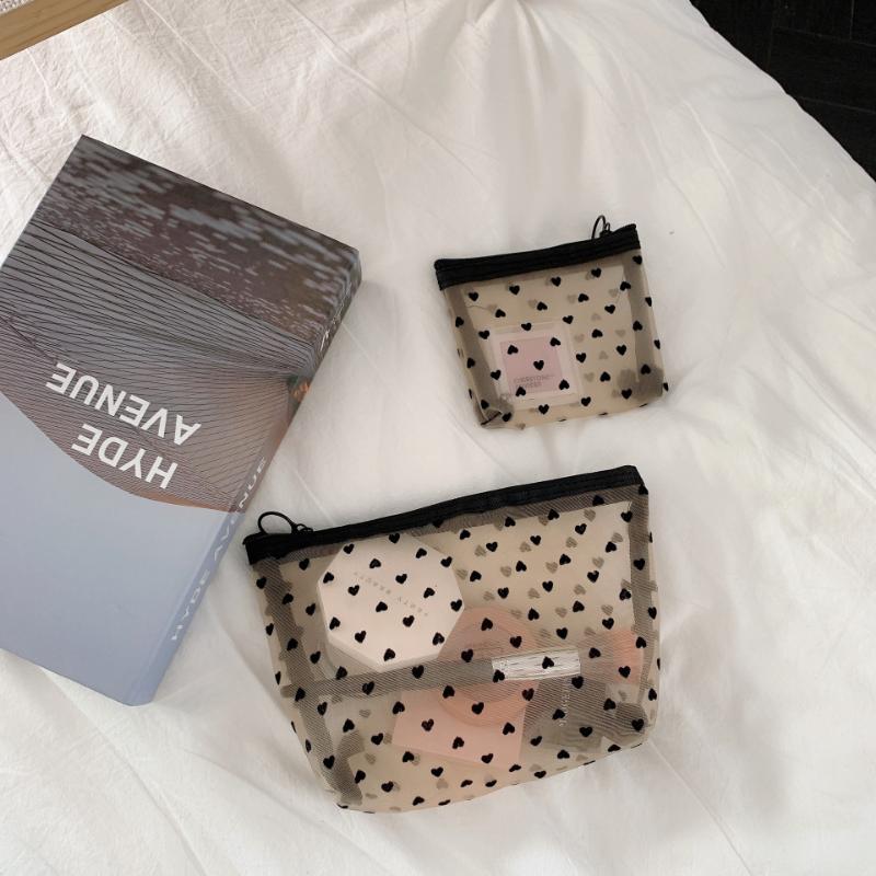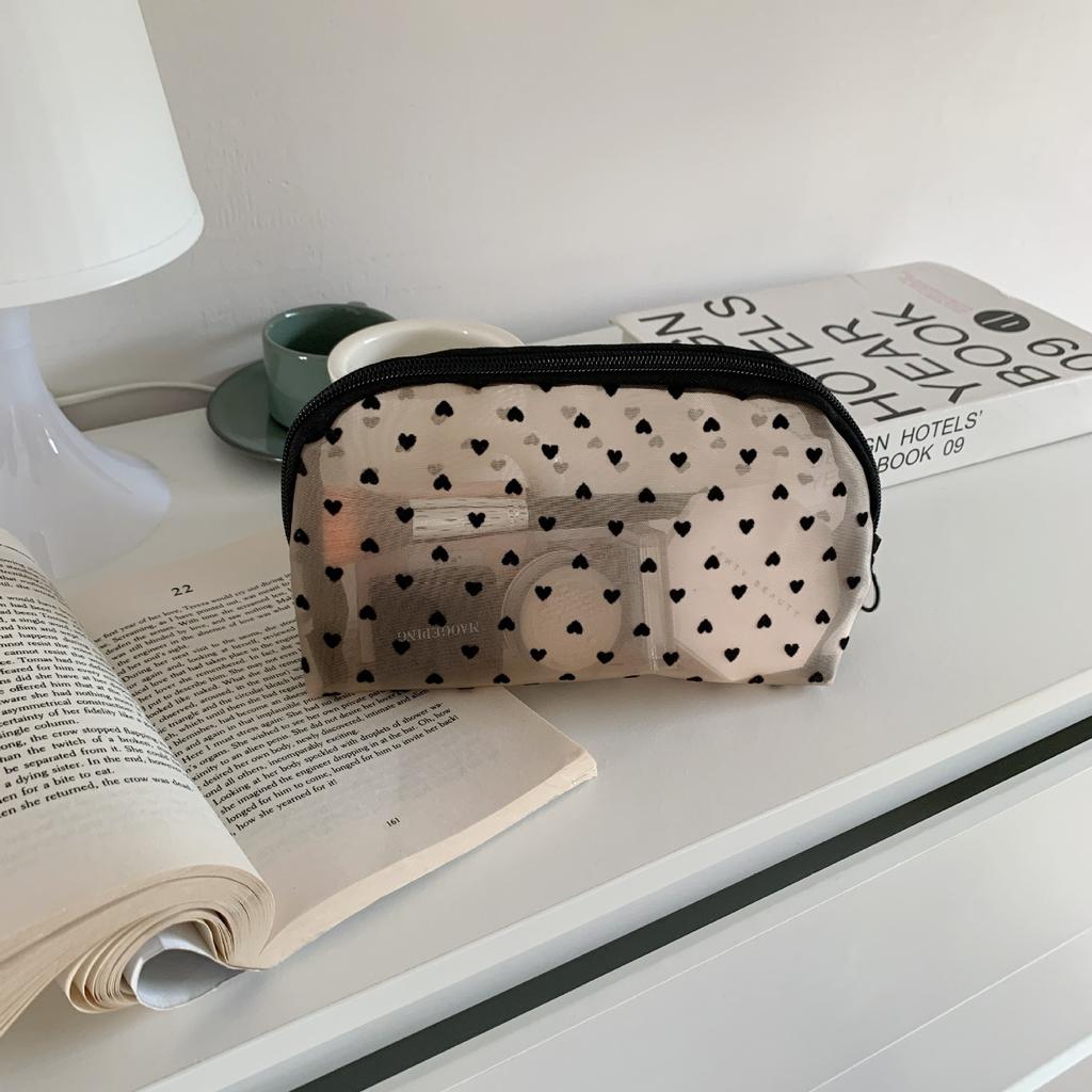 Прозрачная сетчатая косметичка, набор коробок, милая молния с принтом, портативная сумка для хранения, портативная сумка для туалетных принадлежностей, канцелярская сумка для женщин