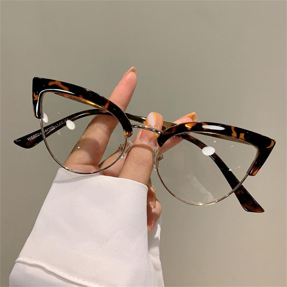 Ретро очки «кошачий глаз», женские очки с изображением, анти-синий светильник, металлическая оправа, прозрачные очки, модные поддельные очки, подарки для девочек