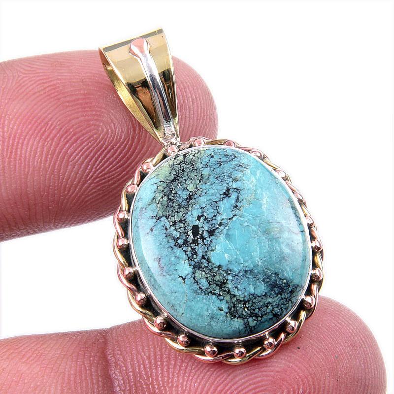 Подвеска из натурального тибетского бирюзового камня из цельного серебра 925 пробы в двух тонах 1,50'' G1k57 — купить товар онлайн с бесплатной доставкой по всему миру!