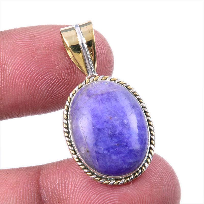 Natural Purple Moonstone Gemstone 925 Solid Silver Two Tone Pendant 1.25 Q8U42 — купить товар онлайн с бесплатной доставкой по всему миру!