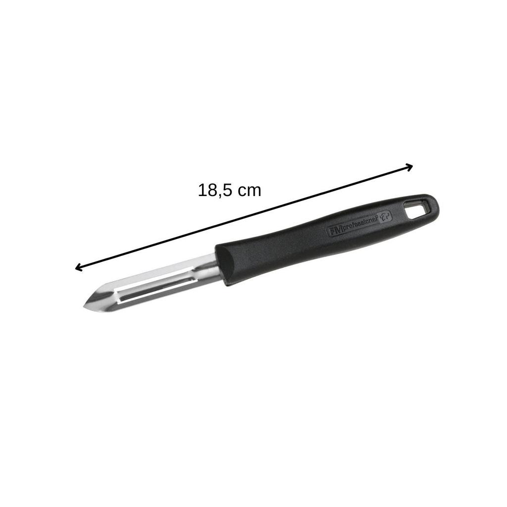 Этот набор из 2 ножей для очистки фруктов и овощей FM Professional идеально подходит для эффективной и точной очистки фруктов и овощей.. Эти овощечистки оснащены сверхострым лезвием из нержавеющей стали, которое позволяет легко чистить картофель, морковь, кабачки и многие другие овощи.. Лезвие также имеет зазубрины для лучшего захвата и более удобного использования.