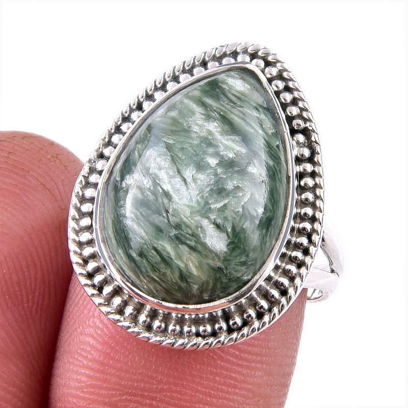 Кольцо из стерлингового серебра 925 пробы с натуральным драгоценным камнем серафинитом S.7.5 F2n76