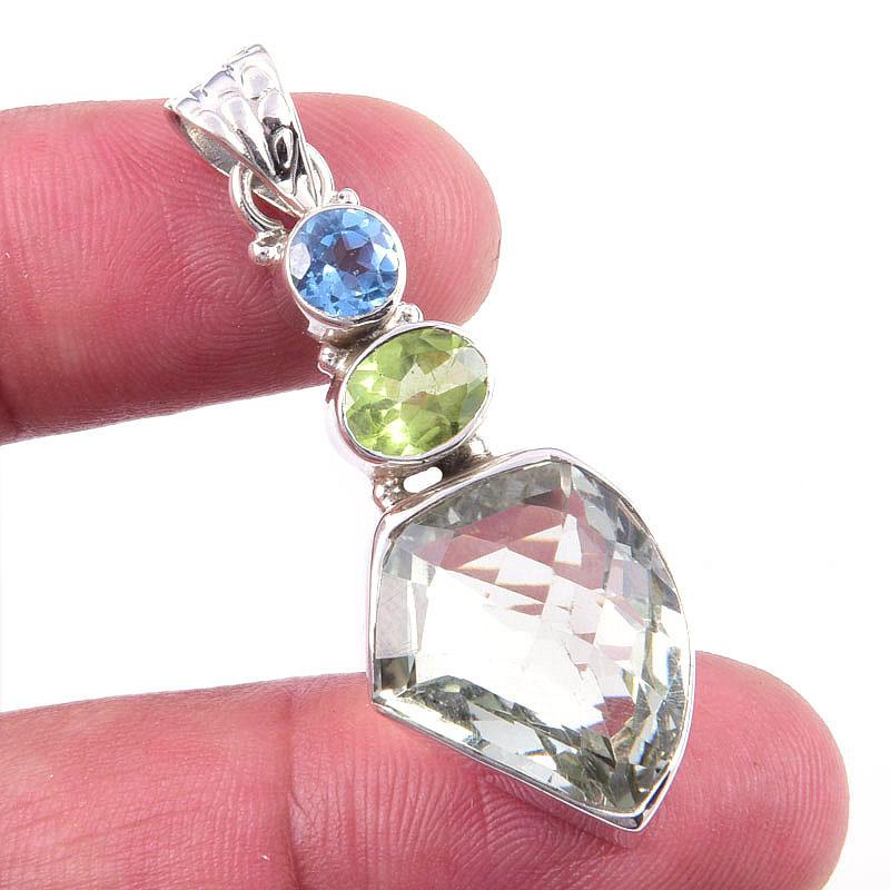 Натуральный зеленый аметист, перидот 925 пробы стерлинговое серебро подарок кулон 1,75" a7j79