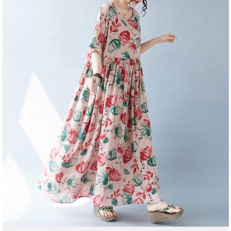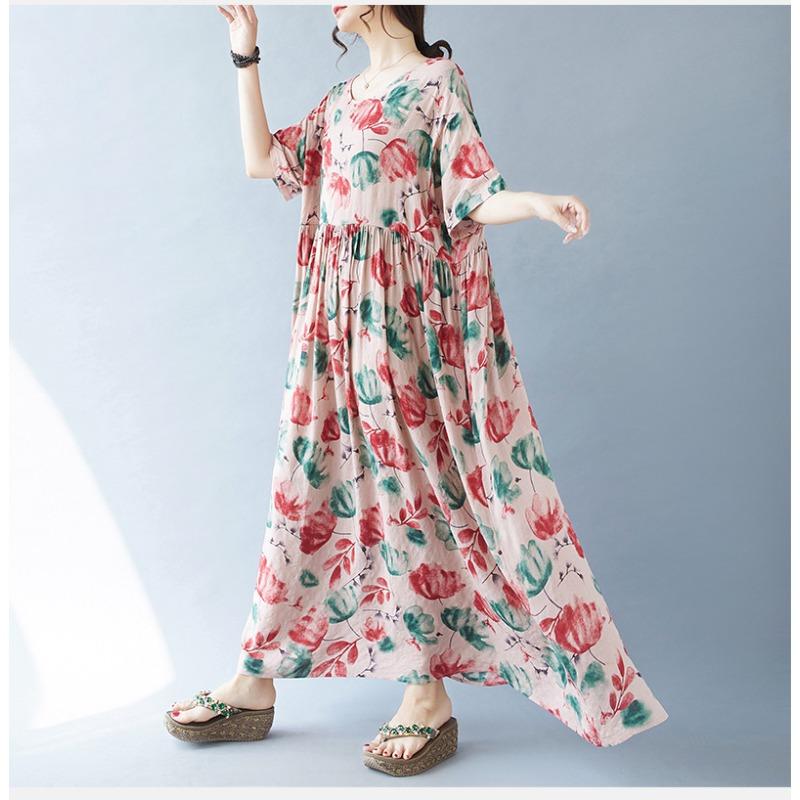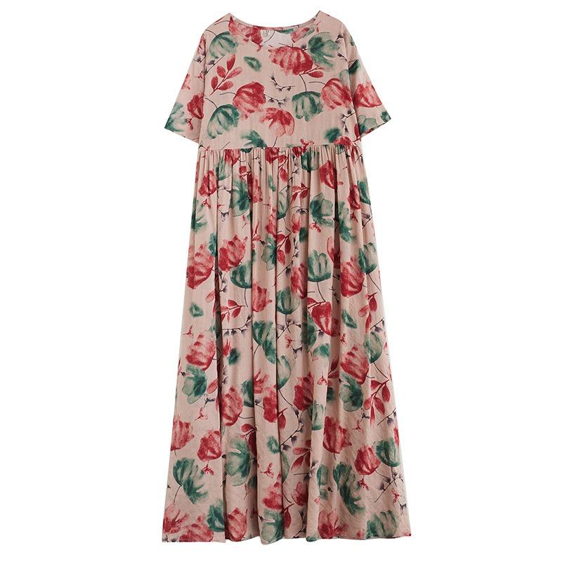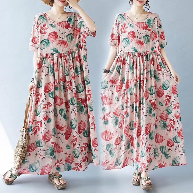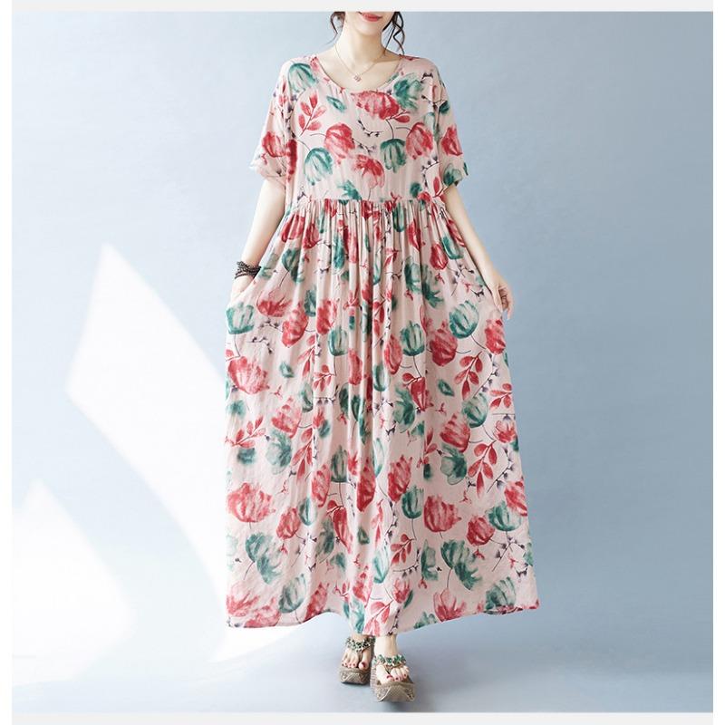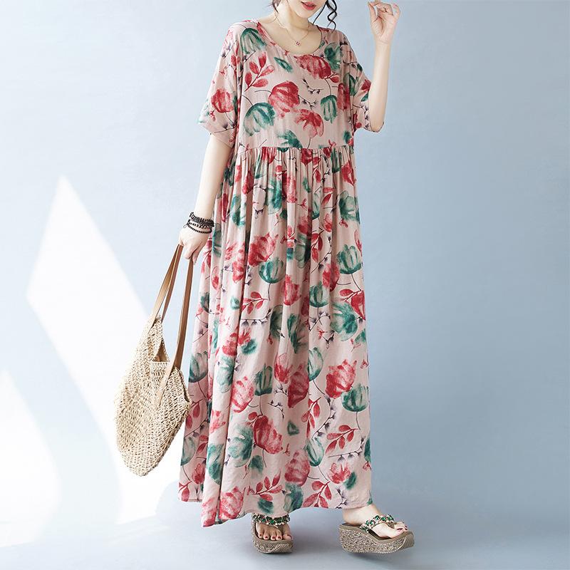 Женское платье больших размеров, простое модное богемное длинное платье, летнее платье с коротким рукавом и круглым вырезом с принтом