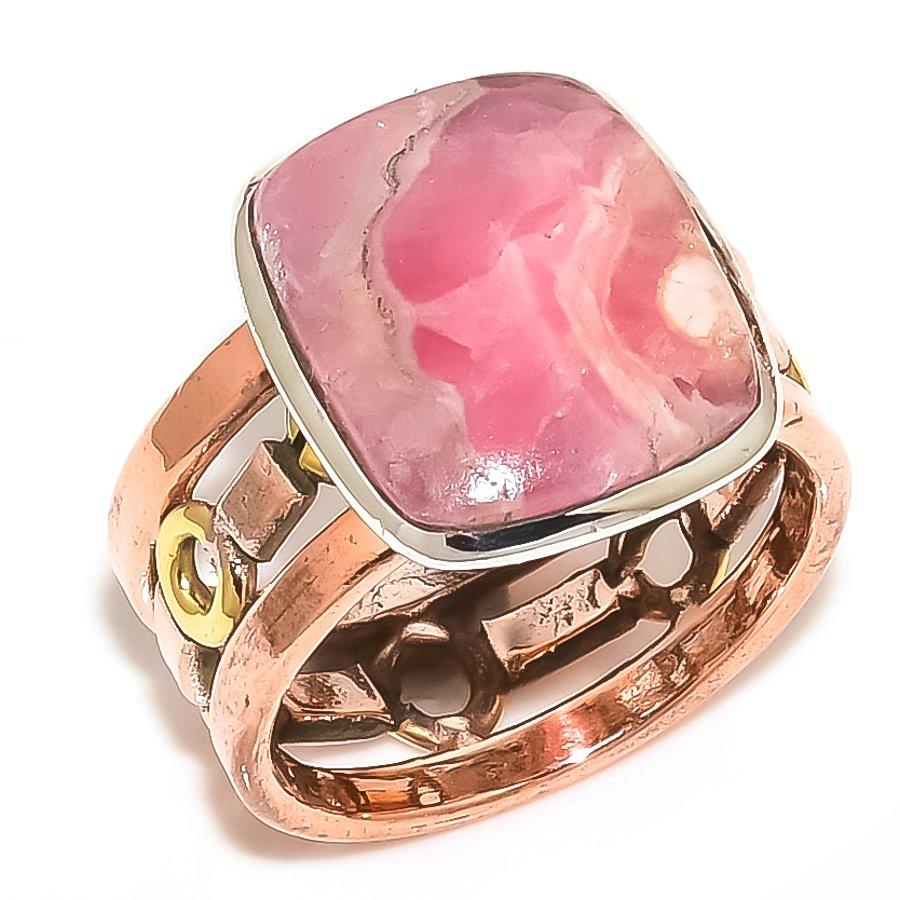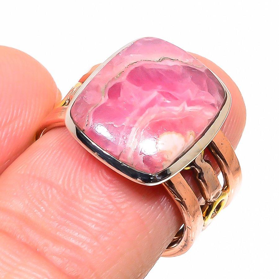 Натуральный родохрозит драгоценный камень двухцветное серебряное ювелирное кольцо 925 пробы S.7.5 m5w24