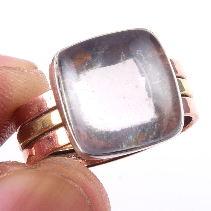 Кольцо из двухцветного серебра 925 пробы с натуральным розовым кварцем ручной работы S.9 f1I23