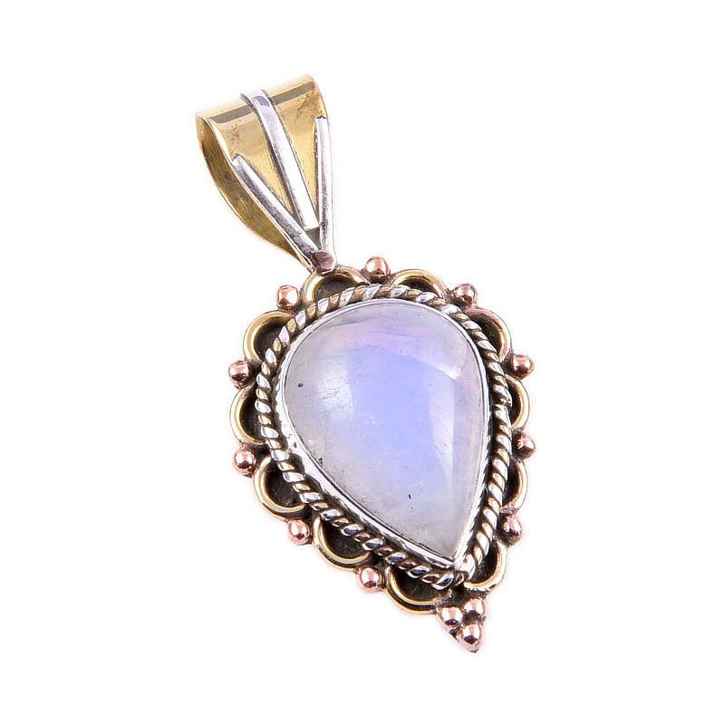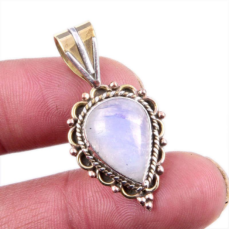 Подвеска из натурального радужного лунного камня из цельного серебра 925 пробы в двух тонах 1,5 дюйма q5S28