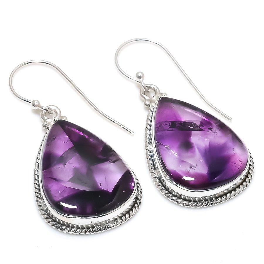 Серьги из стерлингового серебра 925 пробы с натуральным бразильским аметистом 1,75 дюйма p5H83