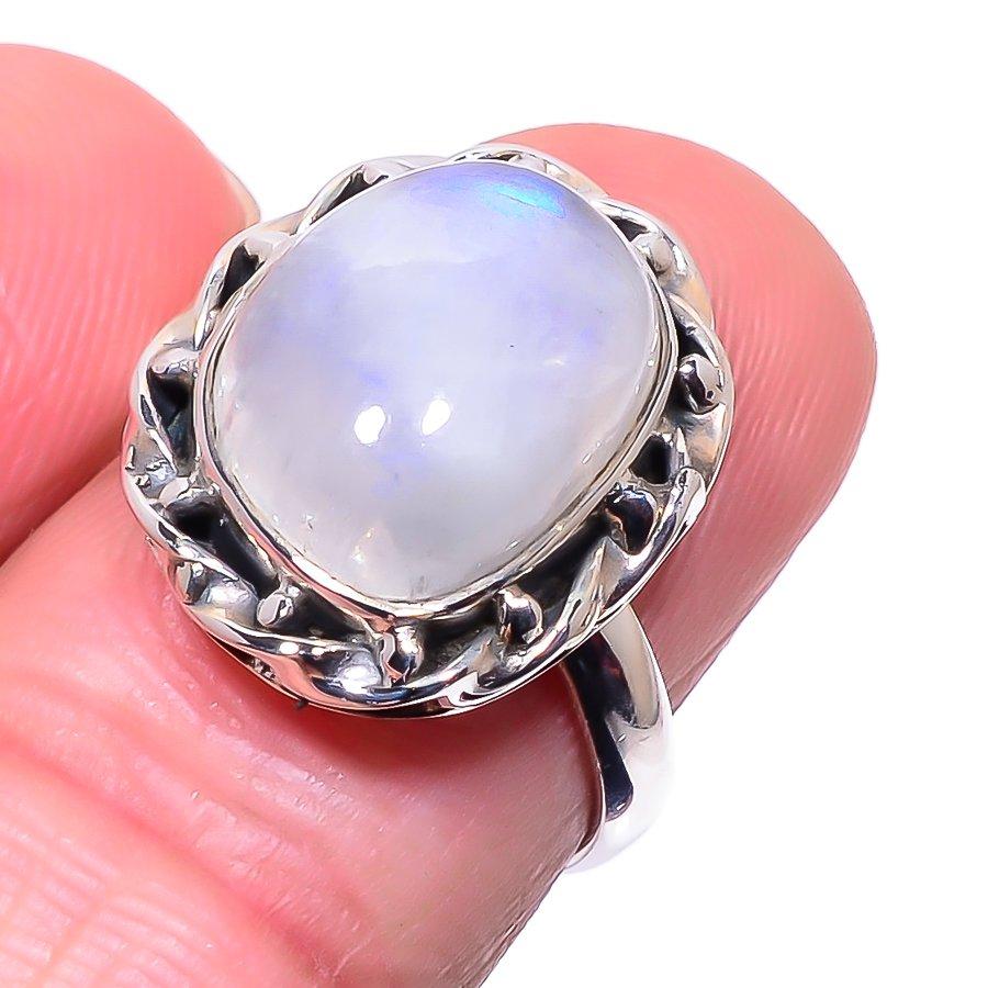 Натуральный радужный лунный камень драгоценный камень 925 стерлингового серебра ювелирное изделие кольцо размер 7 p4Z41