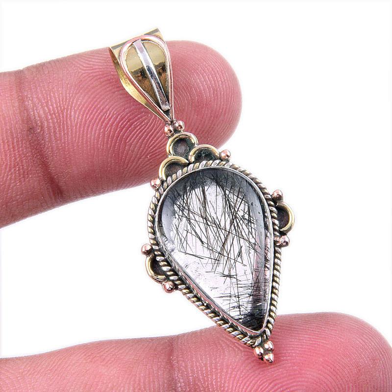 Подвеска в подарок из натурального черного рутила из стерлингового серебра 925 пробы в двухцветном исполнении 1,75 дюйма T2o51