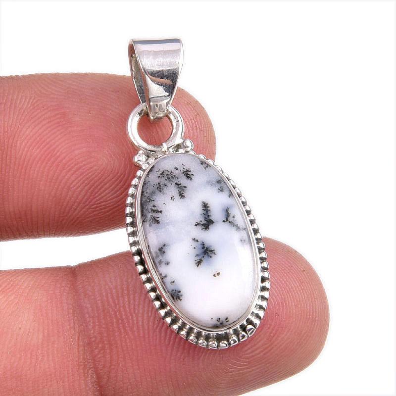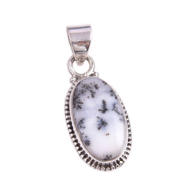 Подвеска из натурального опала дендрита из стерлингового серебра 925 пробы 1,5 дюйма M4y81