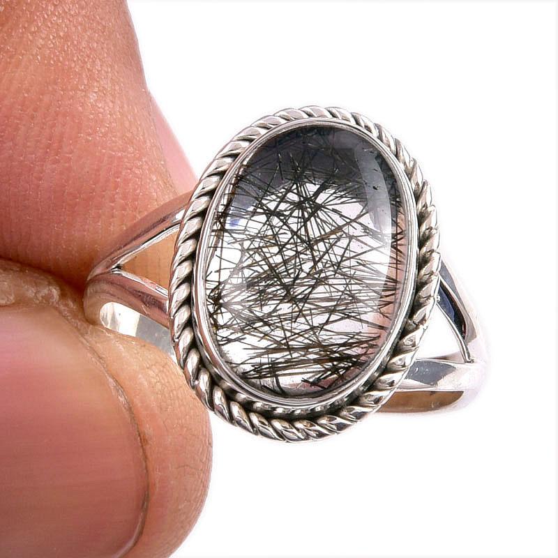 Natural Black Rutile Gemstone 925 Solid Sterling Silver Jewelry Ring S.7.5 C5L76 — купить товар онлайн с бесплатной доставкой по всему миру!