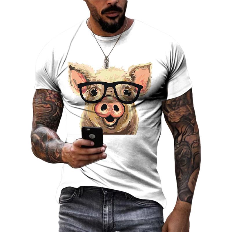 Летние футболки с забавным 3D рисунком свиньи, модные мужские уличные футболки в стиле хип-хоп с индивидуальным принтом, повседневные футболки с круглым вырезом и коротким рукавом