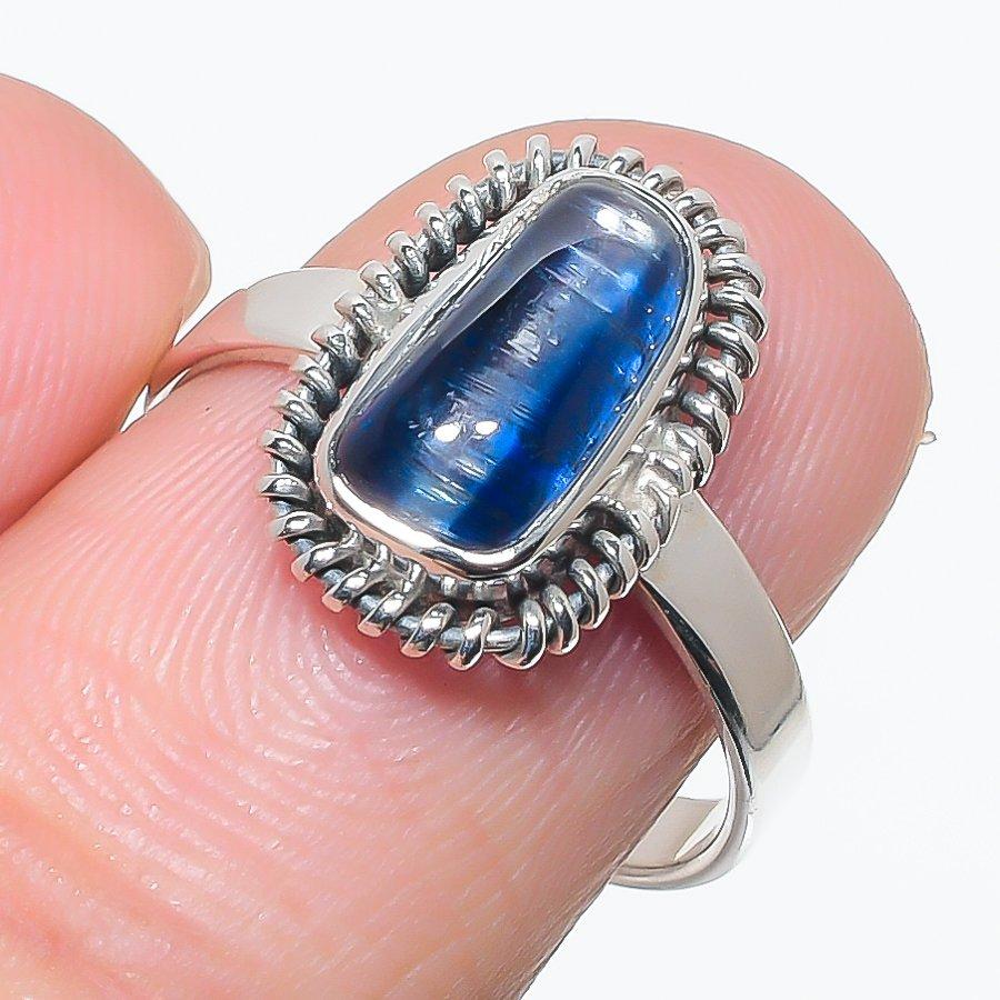 Натуральный Синий Кианит Камень Ручная Работа 925 Пробы Стерлинговое Серебро Ювелирное Изделие Размер Кольца 8 k4R64