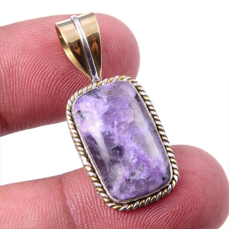 Подвеска из натурального драгоценного камня чароит из стерлингового серебра 925 пробы в двух тонах 1,25 дюйма C9U00 — купить товар онлайн с бесплатной доставкой по всему миру!