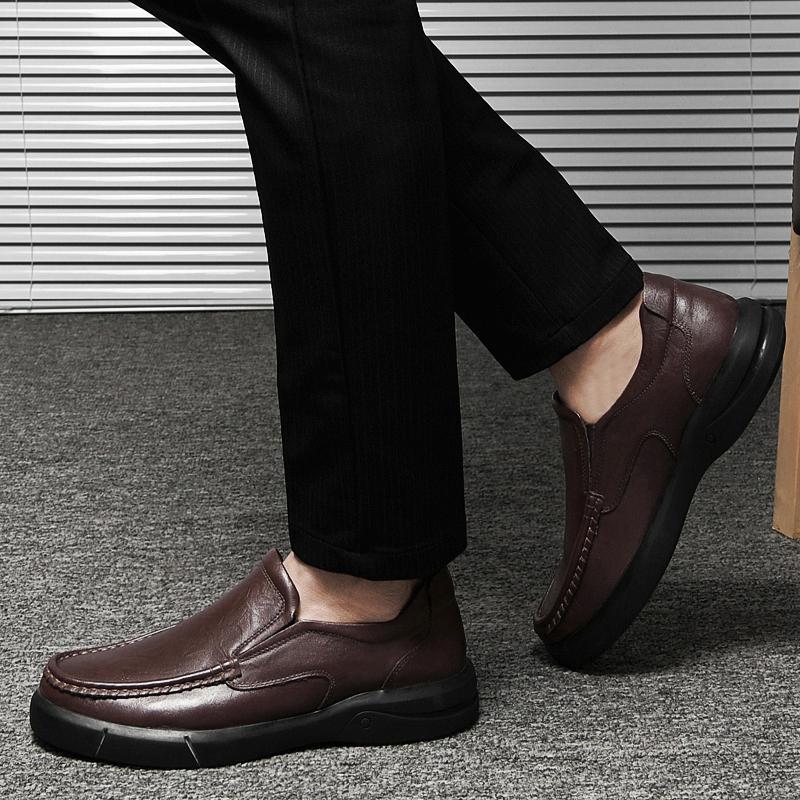 Мужские повседневные лоферы, удобная легкая прогулочная обувь, дышащая мужская кожаная обувь без шнуровки