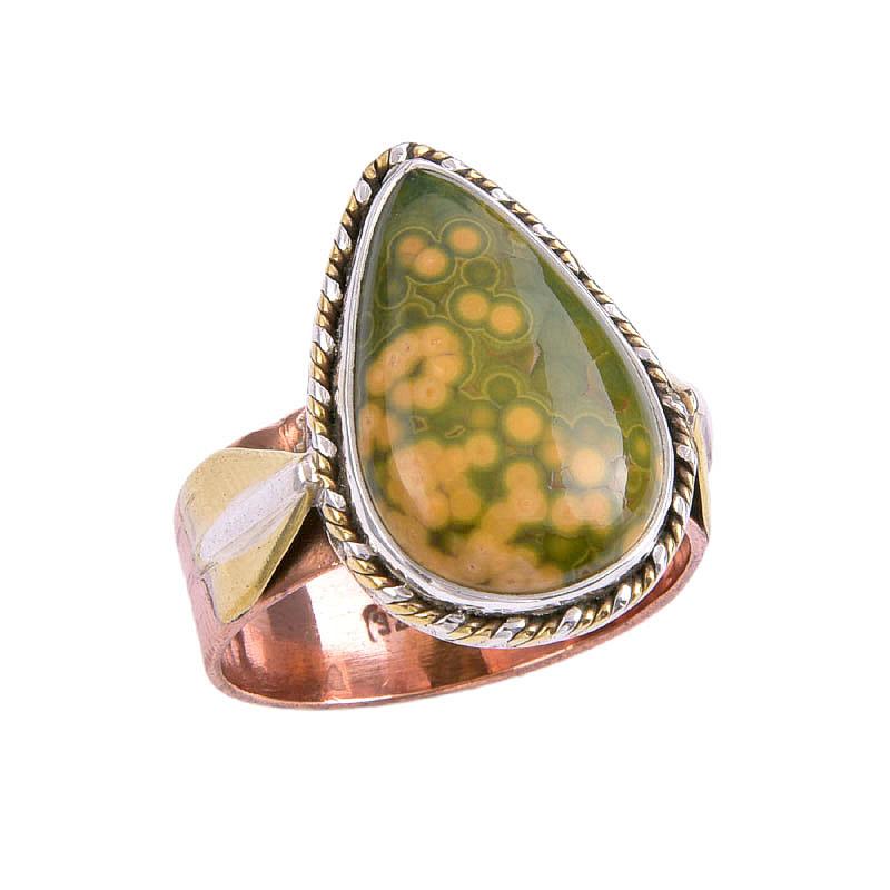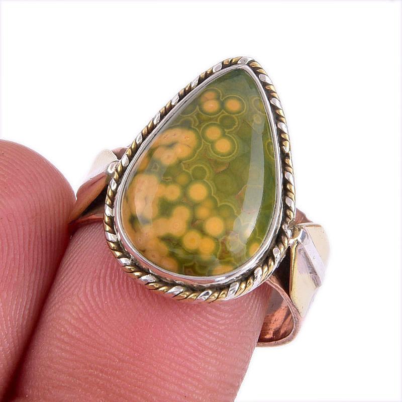 Кольцо из серебра 925 пробы с натуральным океаническим яшмовым драгоценным камнем S.9 L2T39