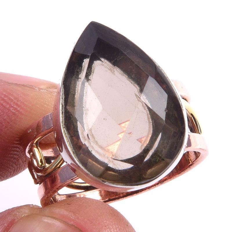 Натуральный дымчатый кварц драгоценный камень 925 стерлингового серебра ювелирные изделия двухцветное кольцо S.7 s0S27