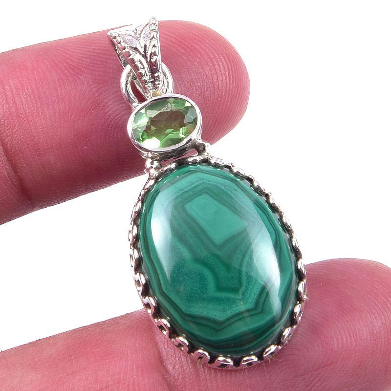 Подвеска из натурального малахита, перидота, стерлингового серебра 925 пробы, 1,50'' A5D35