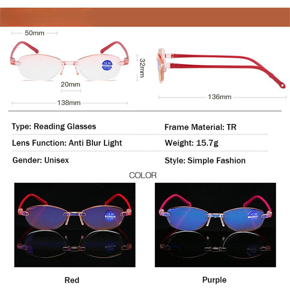 Диоптрийные безрамные очки для чтения с синим светом, женские очки для пресбиопии