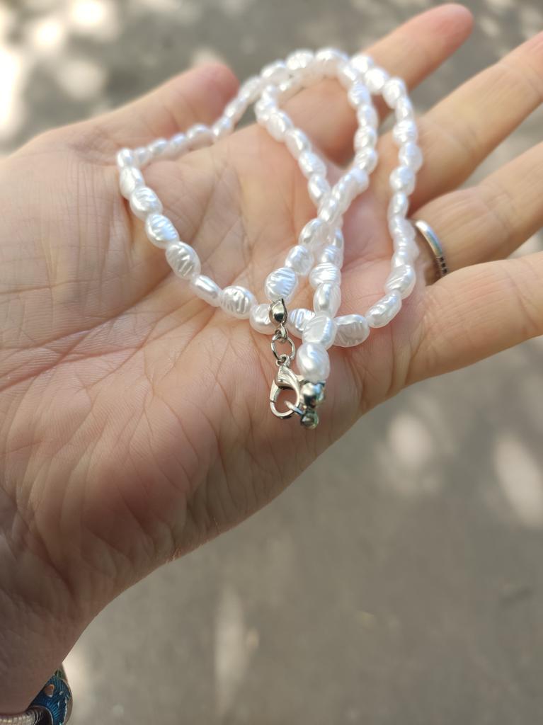 Бусы приличные. Не жемчуг, конечно. Скорее всего, покрашены перламутровой краской. Под речной жемчуг. У меня есть бусы из настоящего жемчуга, но у них застежка сломалась. Решила купить другие на замену. Длина этих бус 48 см без цепочки, а с цепочкой 55 см. Длина хорошая.