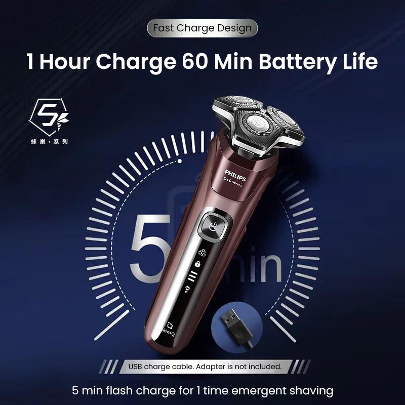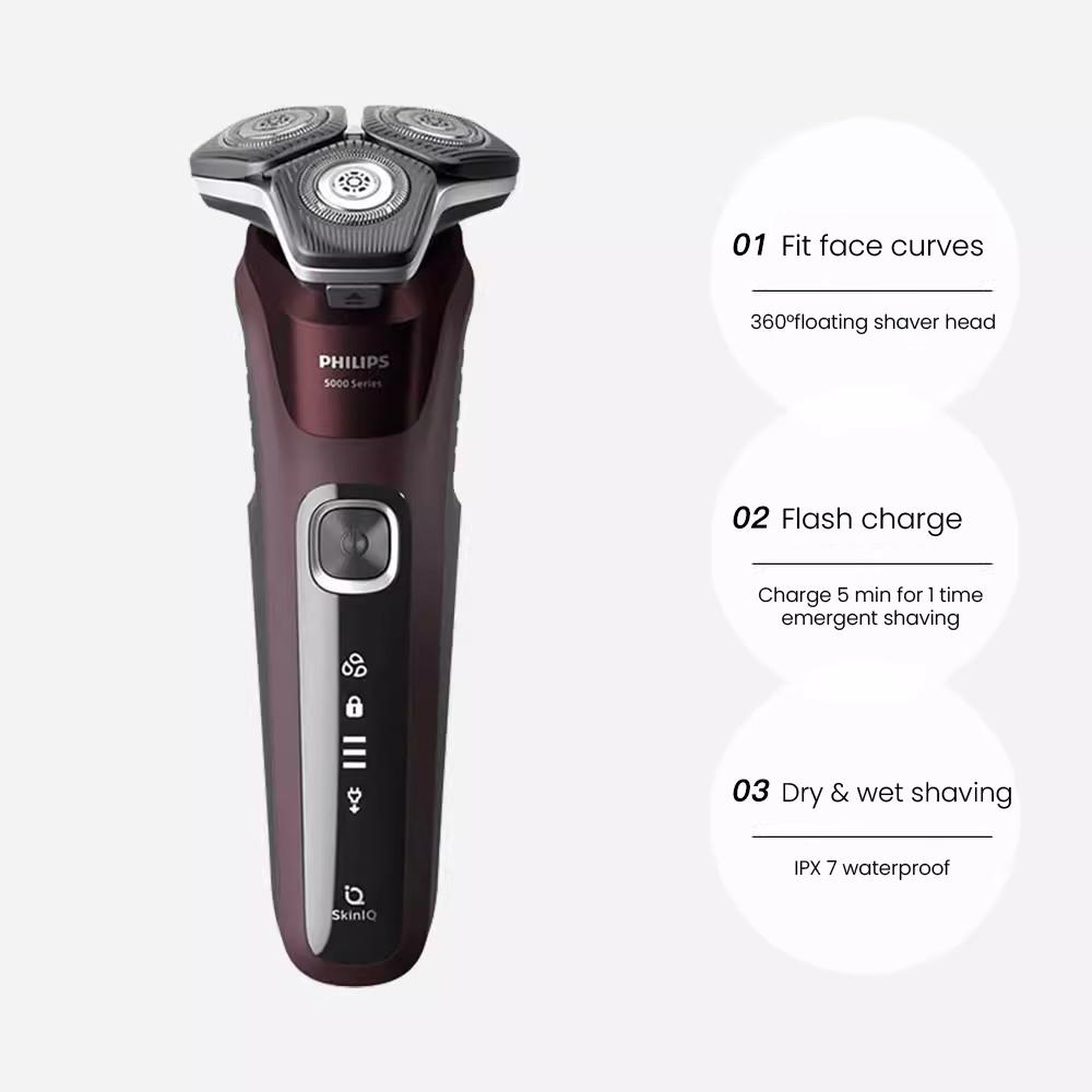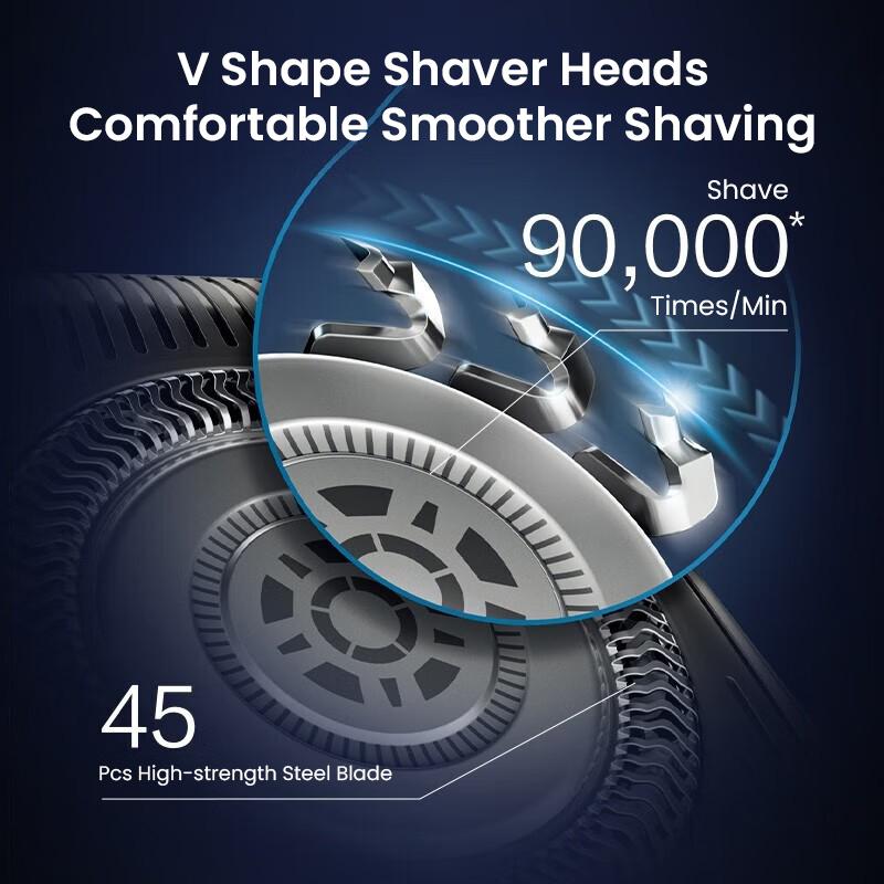 1. Технология адаптивной мощности Skin IQ, ощущает плотность и твердость бороды 250 раз в секунду, соответствующим образом регулирует мощность двигателя для гладкого и быстрого бритья
