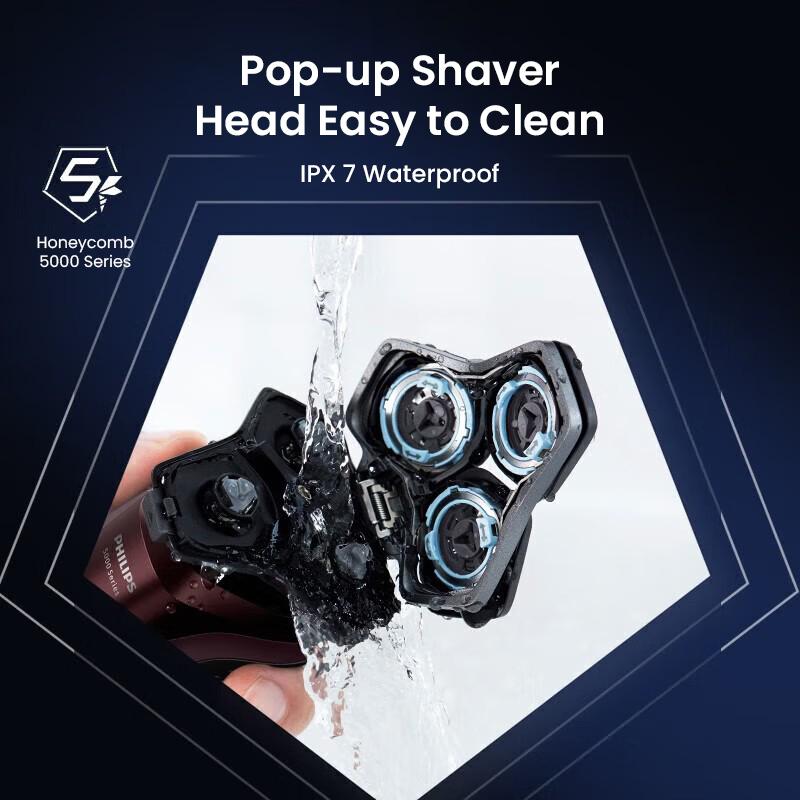 2. Гибкая бритвенная головка на 360 °, сотовая конструкция Pentagon, подходит к изгибам лица, повышает эффективность бритья и сокращает повторное бритье