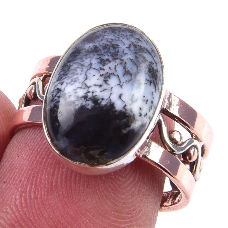Кольцо из натурального опала с дендритом, стерлингового серебра 925 пробы, двухцветное, размер 7,5 P0j65