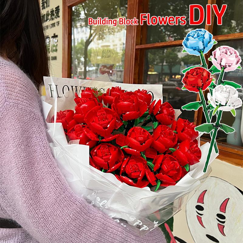 Креативный романтический цветок розы, домашний стол, украшение букета растений, строительные блоки, кирпичи, подарки на день рождения, День святого Валентина для девочек, влюбленных, леди