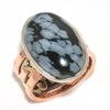 Натуральный Снежный Обсидиан Двухцветное Ювелирное Кольцо из Стерлингового Серебра 925 пробы Размер 9 M2b44