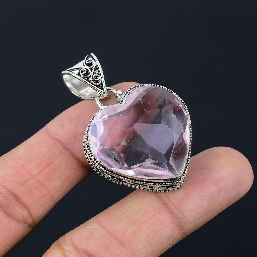 Подвеска из драгоценного камня с розовым топазом, твердая подвеска из стерлингового серебра 925 пробы, ювелирный подарок для унисекс LG-024