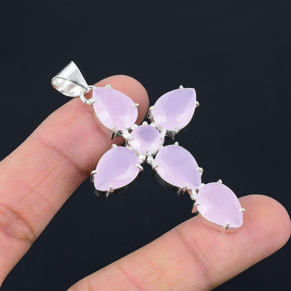Подвеска из драгоценного камня розы и халцедона, твердая подвеска из стерлингового серебра 925 пробы, ювелирное изделие, подарок для унисекс LG-086
