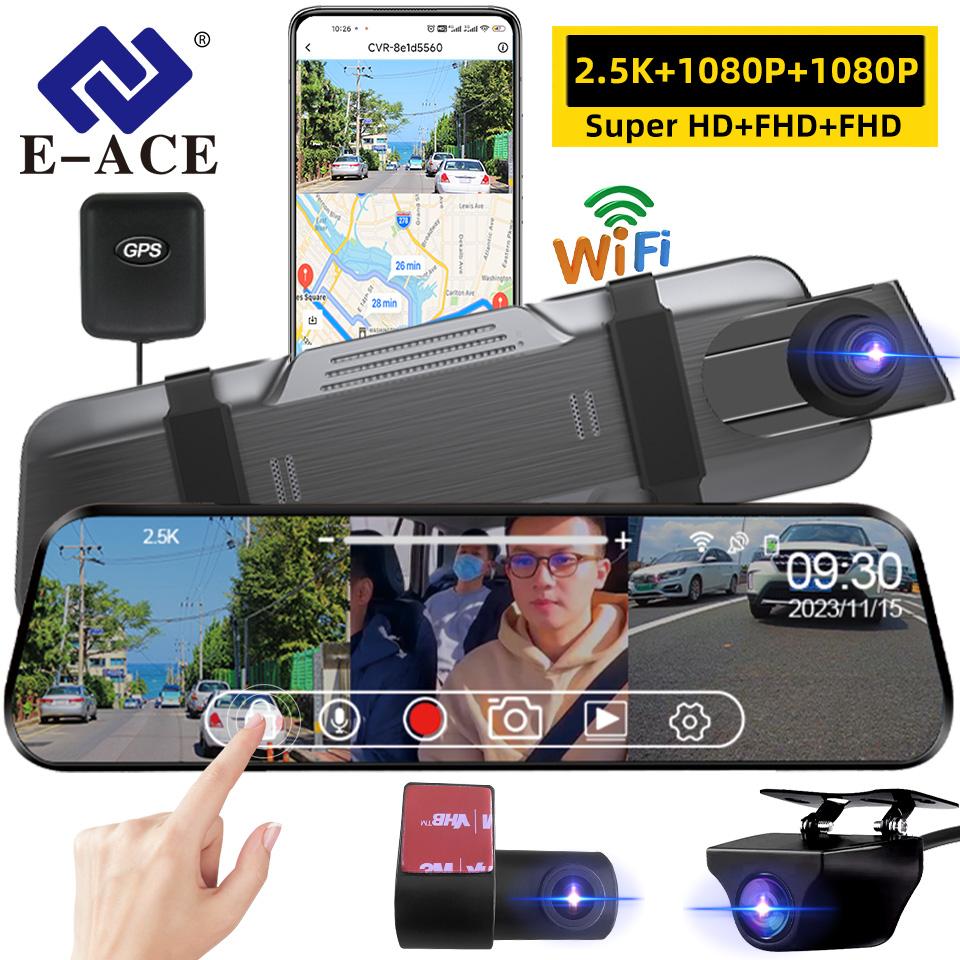 E-ACE 2,5K 3-камерный объектив, автомобильный видеорегистратор, видеорегистратор, 9,66 дюйма, автоматическое зеркало, 1080P, камера заднего вида, GPS, WIFI, ночное видение, черный ящик