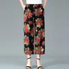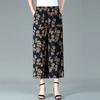 WTEMPO Женские широкие брюки из смеси хлопка и конопли большого размера, тонкие укороченные брюки с высокой талией и эластичным принтом для мамы