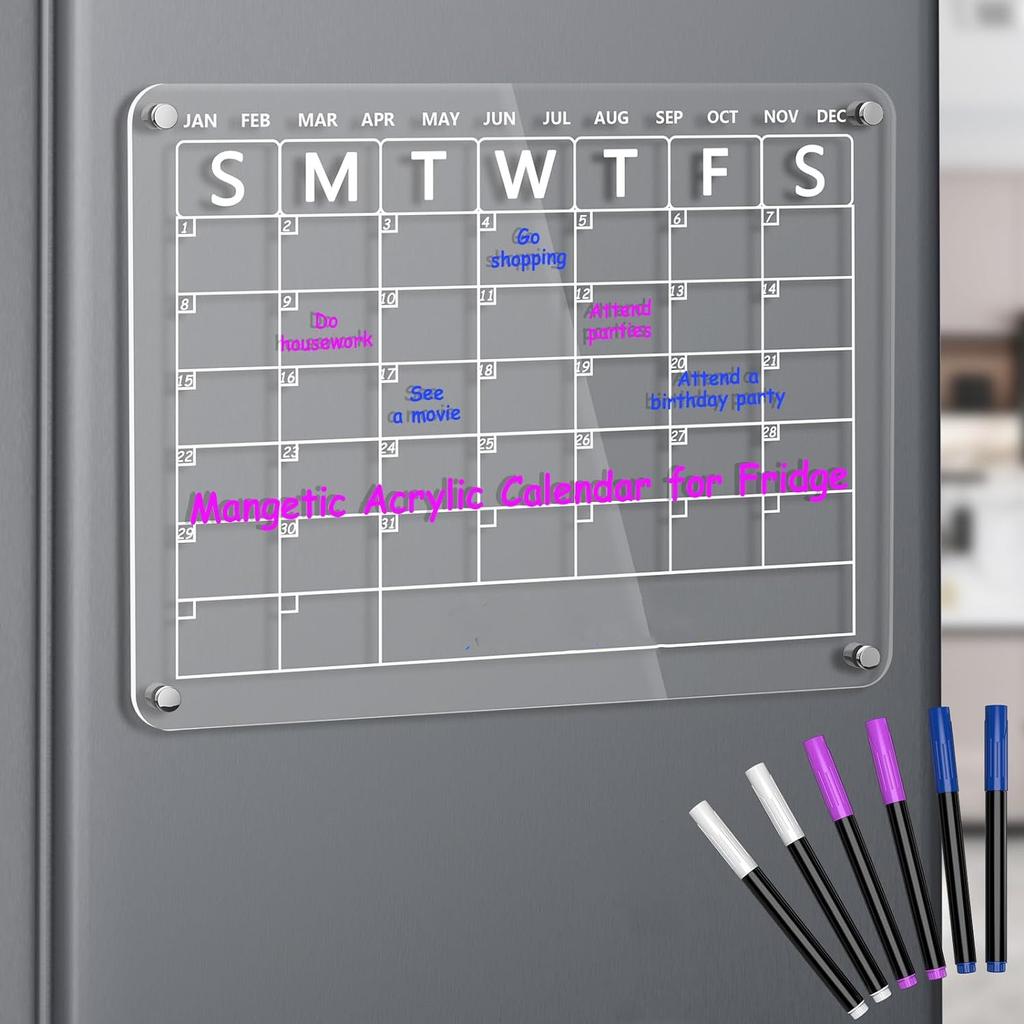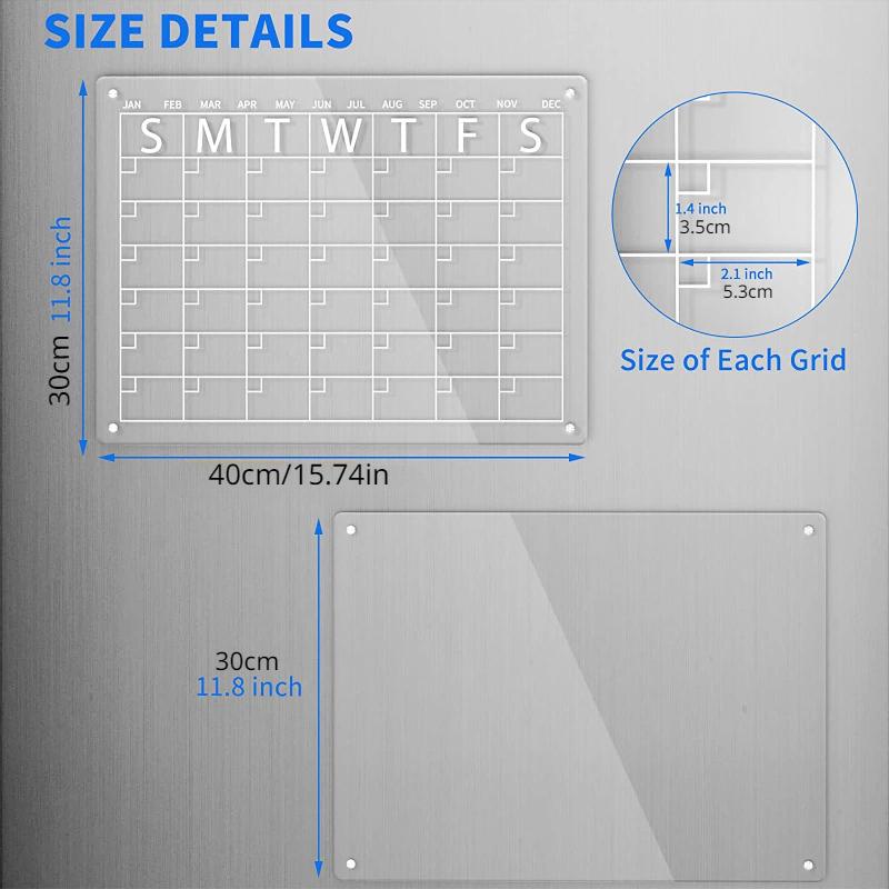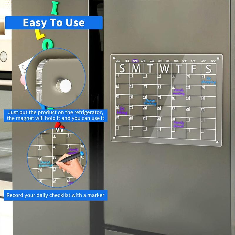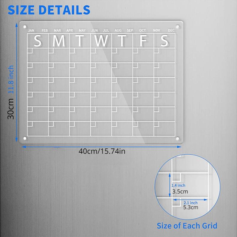 Акриловый магнитный календарь для сухого стирания на холодильник, магнитный календарь на холодильник, прозрачный календарь для сухого стирания 40 см х 30 см
