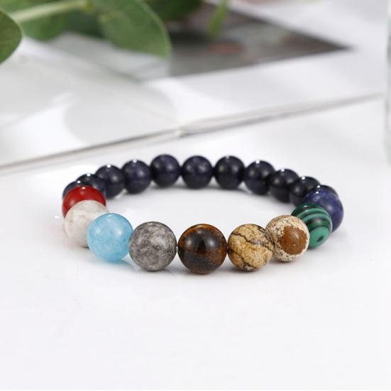 Бусины из натурального камня: Этот браслет изготовлен из бусин из натурального камня, которые демонстрируют уникальные цвета и узоры, встречающиеся в природе.. Каждая бусина тщательно отбирается, чтобы передать уникальные характеристики каждой планеты.