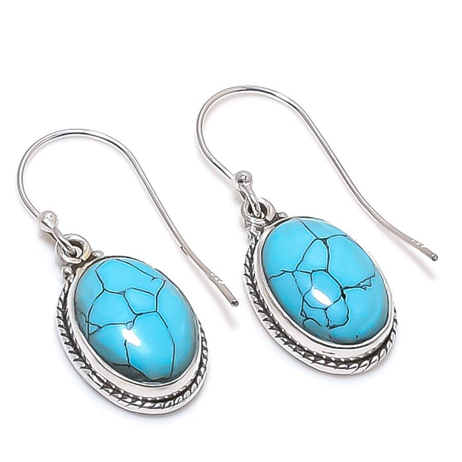 Натуральный бирюзовый драгоценный камень ручной работы 925 пробы стерлинговое серебро серьга 1,25" v2z49
