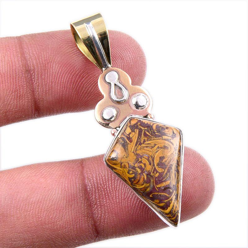 Подвеска из натуральной яшмы Марьям из цельного стерлингового серебра 925 пробы в двухцветном исполнении 1,75 дюйма H8Z69