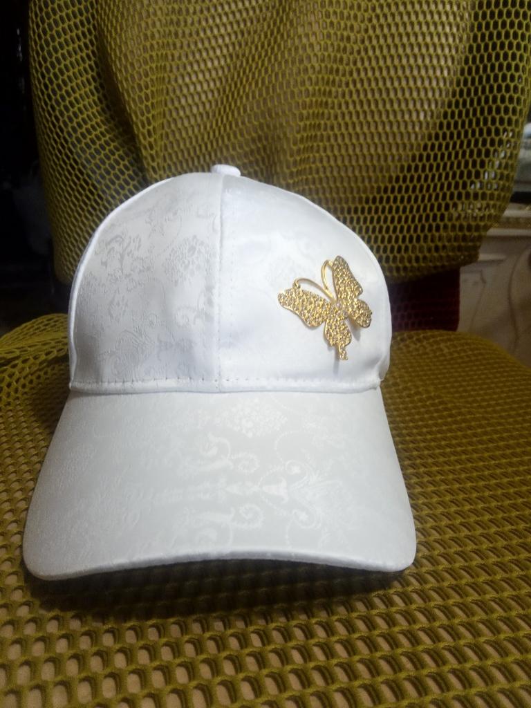 Бейсболка не глубокая.Ткань красивая.К сожалению сшита криво,с одной стороны сильно заужена.Брошь сломана.Сильный залом на видном месте.Сам пошив качественный,швы ровные,нитки не торчат.