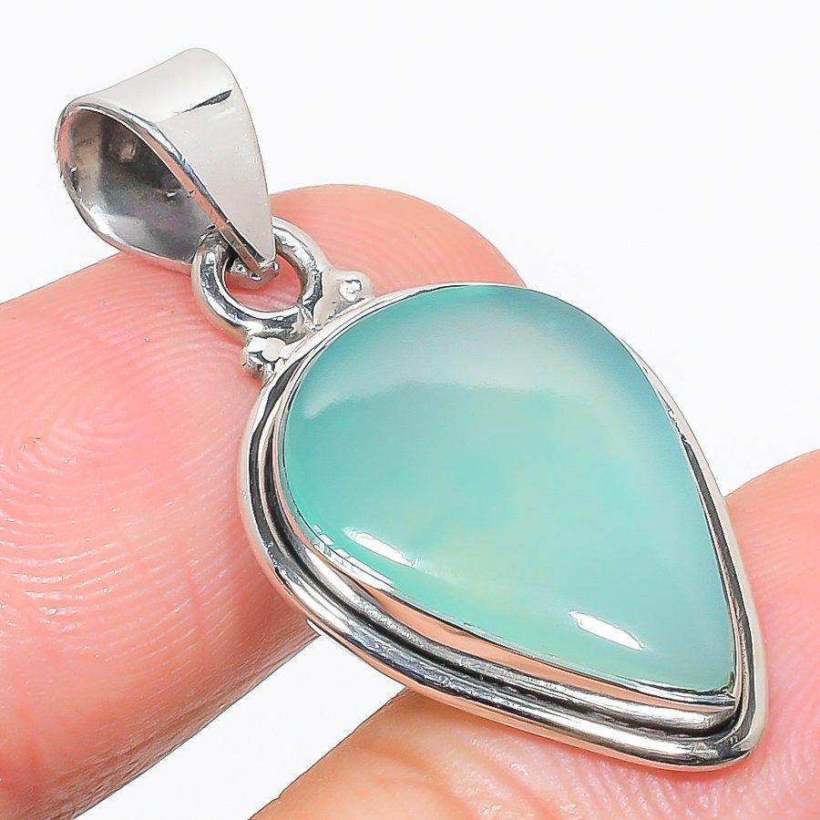 Натуральный Хризопраз Драгоценный камень 925 Проба Стерлинговое Серебро Подарочный Подвес 1.75" q3I36