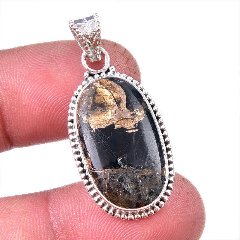 Natural Black Copper Turquoise 925 Solid Sterling Silver Gift Pendant 1.50" O4P17