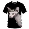 Футболки с забавными животными, безволосый кот, 3D принт, мужская и женская модная уличная одежда, повседневная футболка с круглым вырезом, детские топы в стиле Харадзюку, футболки, одежда