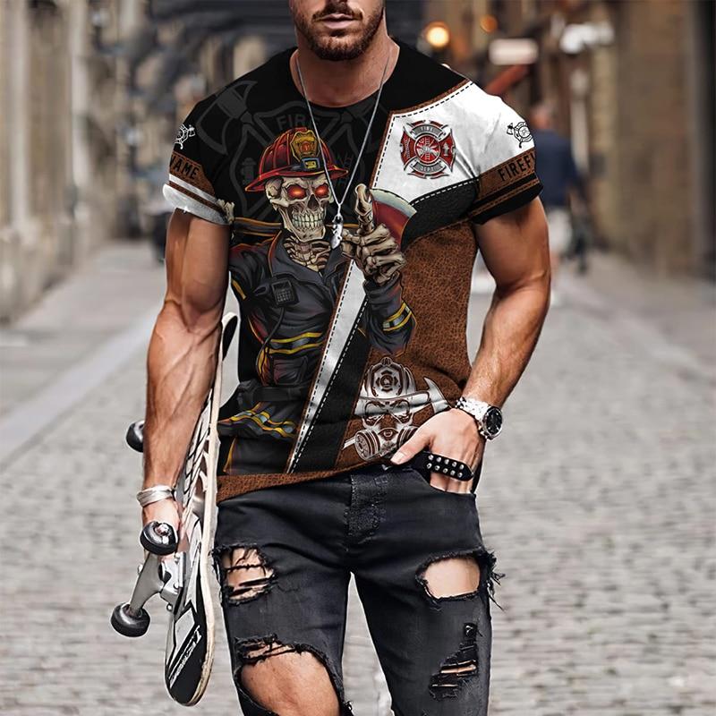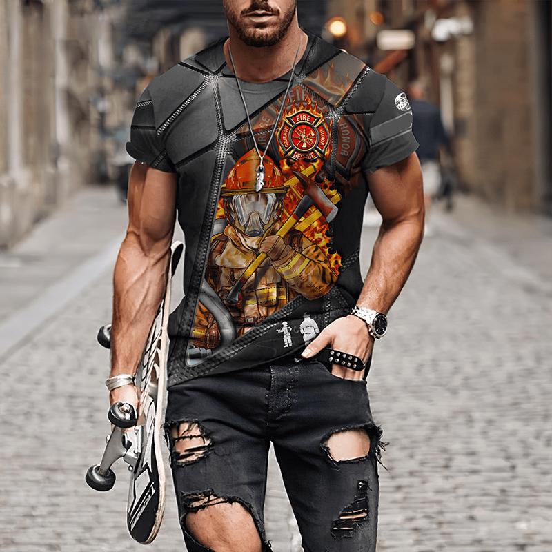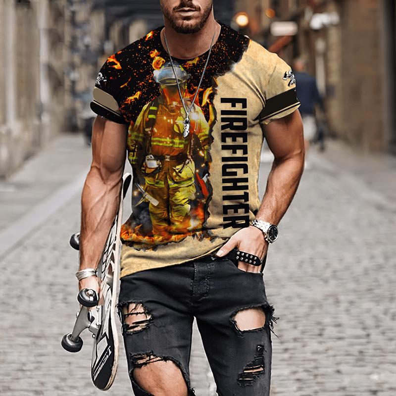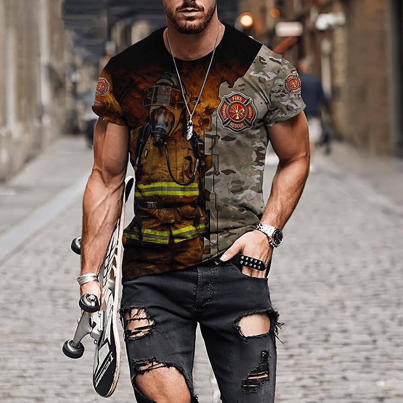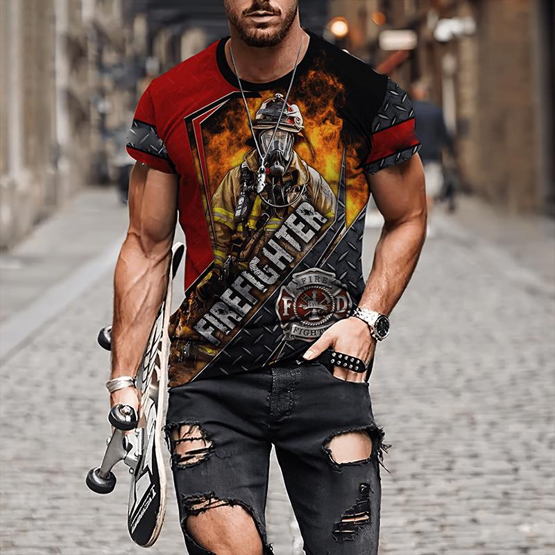 Мужские футболки с 3D принтом «Пожарный», мужская одежда, футболки большого размера, летние повседневные топы с короткими рукавами, индивидуальные