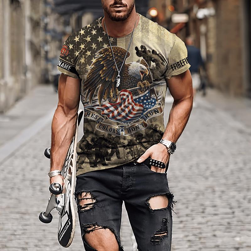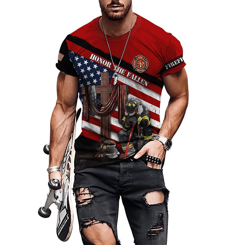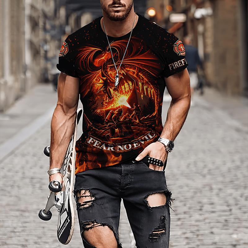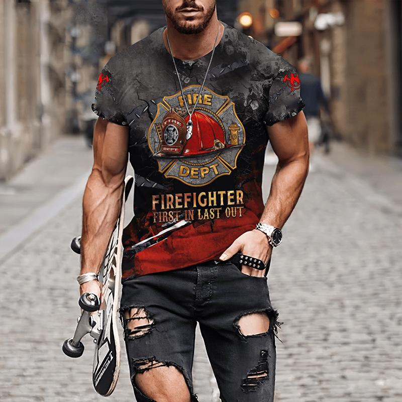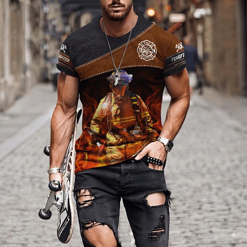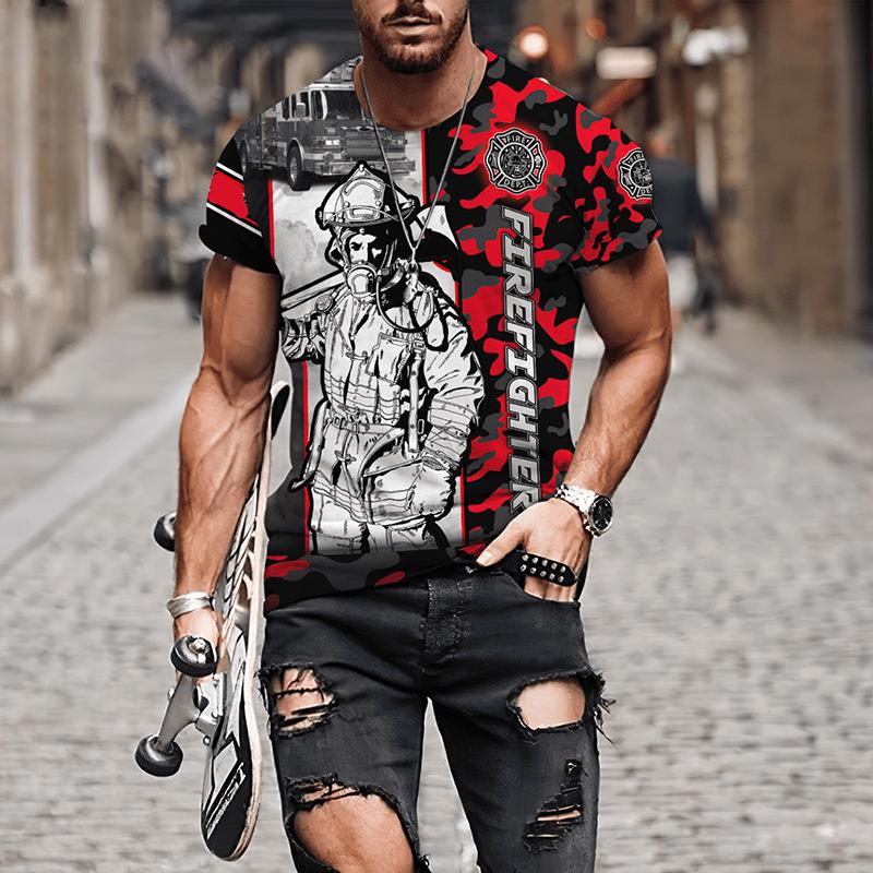 Мужские футболки с 3D принтом «Пожарный», мужская одежда, футболки большого размера, летние повседневные топы с короткими рукавами, индивидуальные