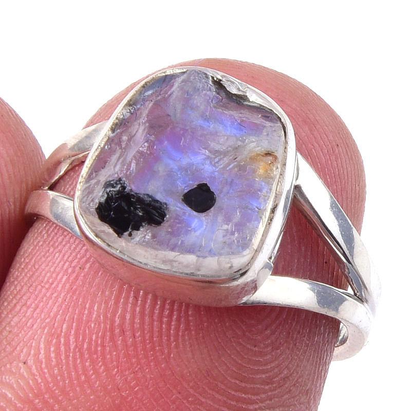 Natural Rainbow Moon Stone Gemstone Handmade 925 Sterling Silver Ring S.6 K8Q69