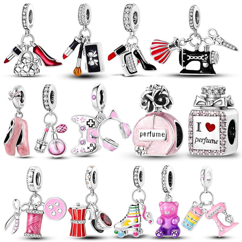 925 Серебряная губная помада, духи, подвески, подходят для оригинального браслета «сделай сам», модная сумка-подвеска «сделай сам», для женщин