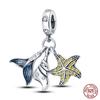 100% настоящие посеребренные бусины серии Ocean, черепаха, краб, русалка, подходят оригинальные браслеты «сделай сам», ювелирные изделия, подарки