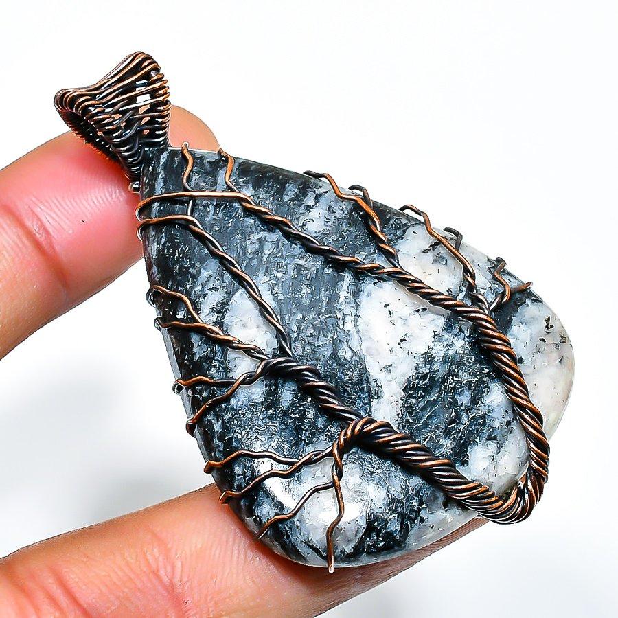 Подвеска из медной проволоки с драгоценным камнем Zebra Jasper, ручная работа, 2,17 дюйма