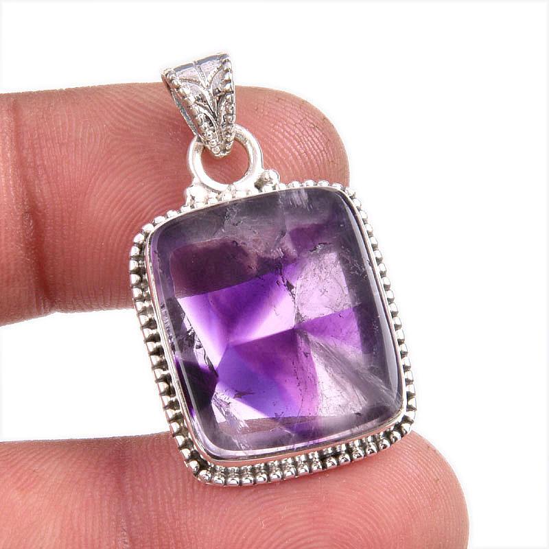 Natural Cloud Amethyst Gemstone 925 Solid Sterling Silver Gift Pendant 1.5" d3E16